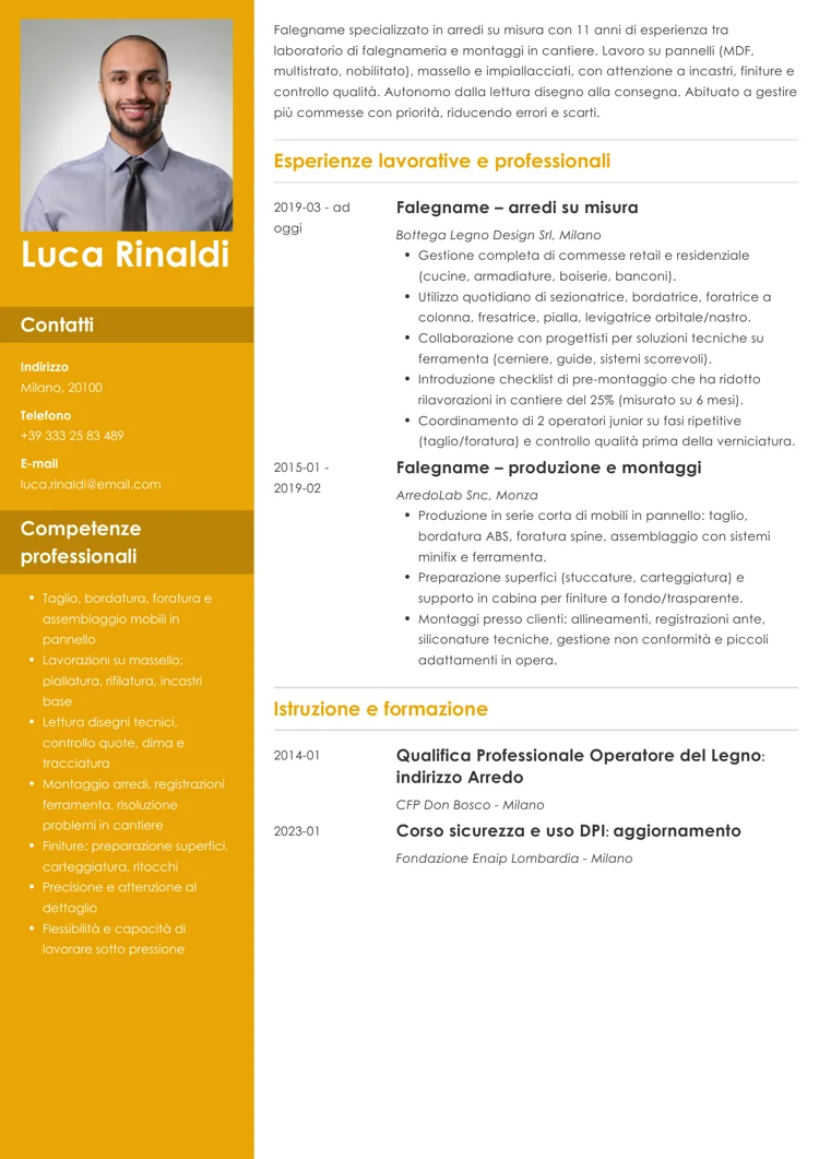 Modello di curriculum da falegname da copiare e incollare (versione testuale)